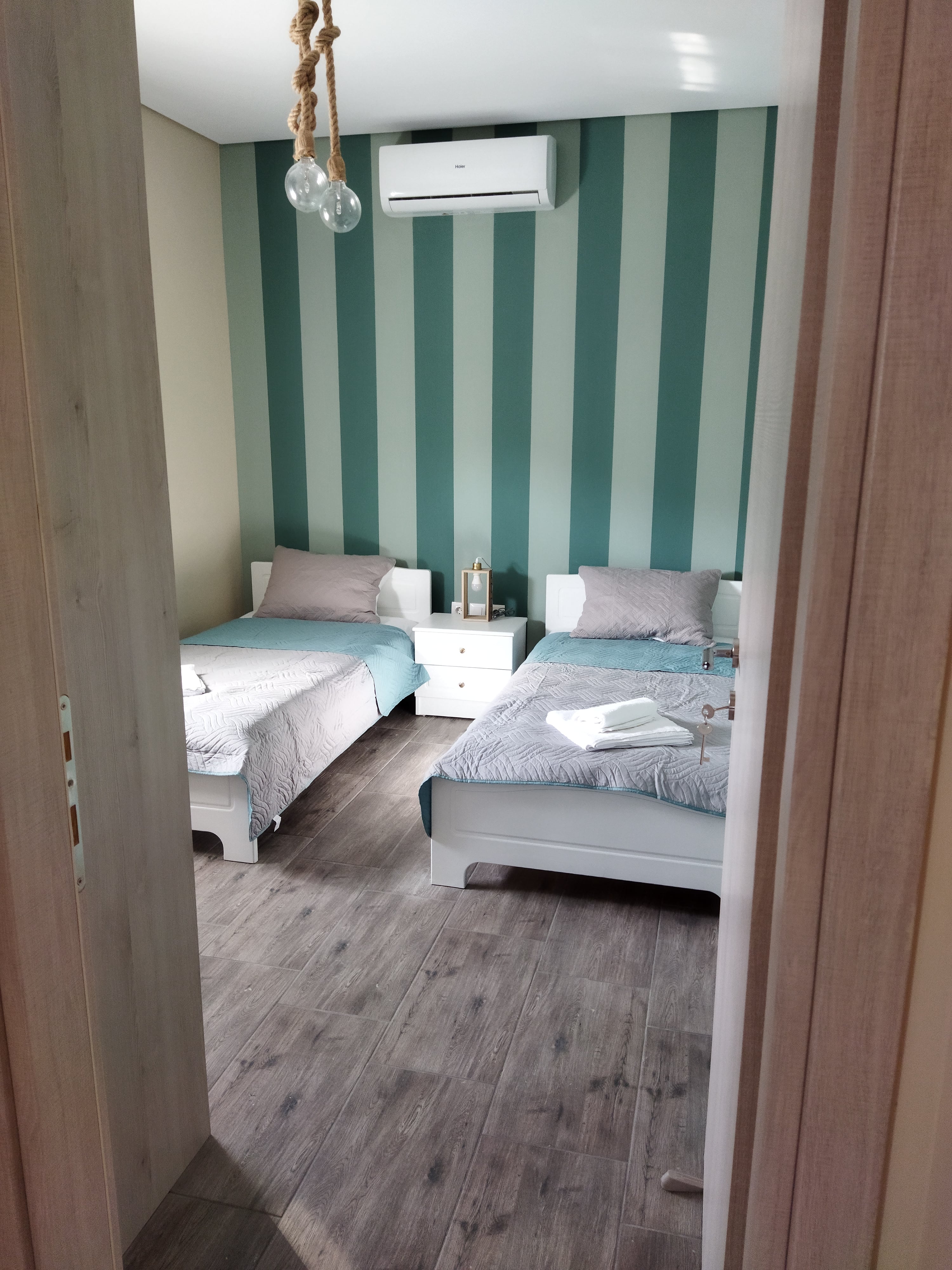 Genießen Sie Komfort und Privatsphäre in diesem hellen 72 m² großen Haus – ideal für Familien oder kleine Gruppen mit bis zu 5 Personen. Das Haus verfügt über zwei Schlafzimmer (eines mit Doppelbett, eines mit zwei Einzelbetten), ein großes Badezimmer mit Waschmaschine sowie ein gemütliches Wohnzimmer mit einem Schlafsofa.