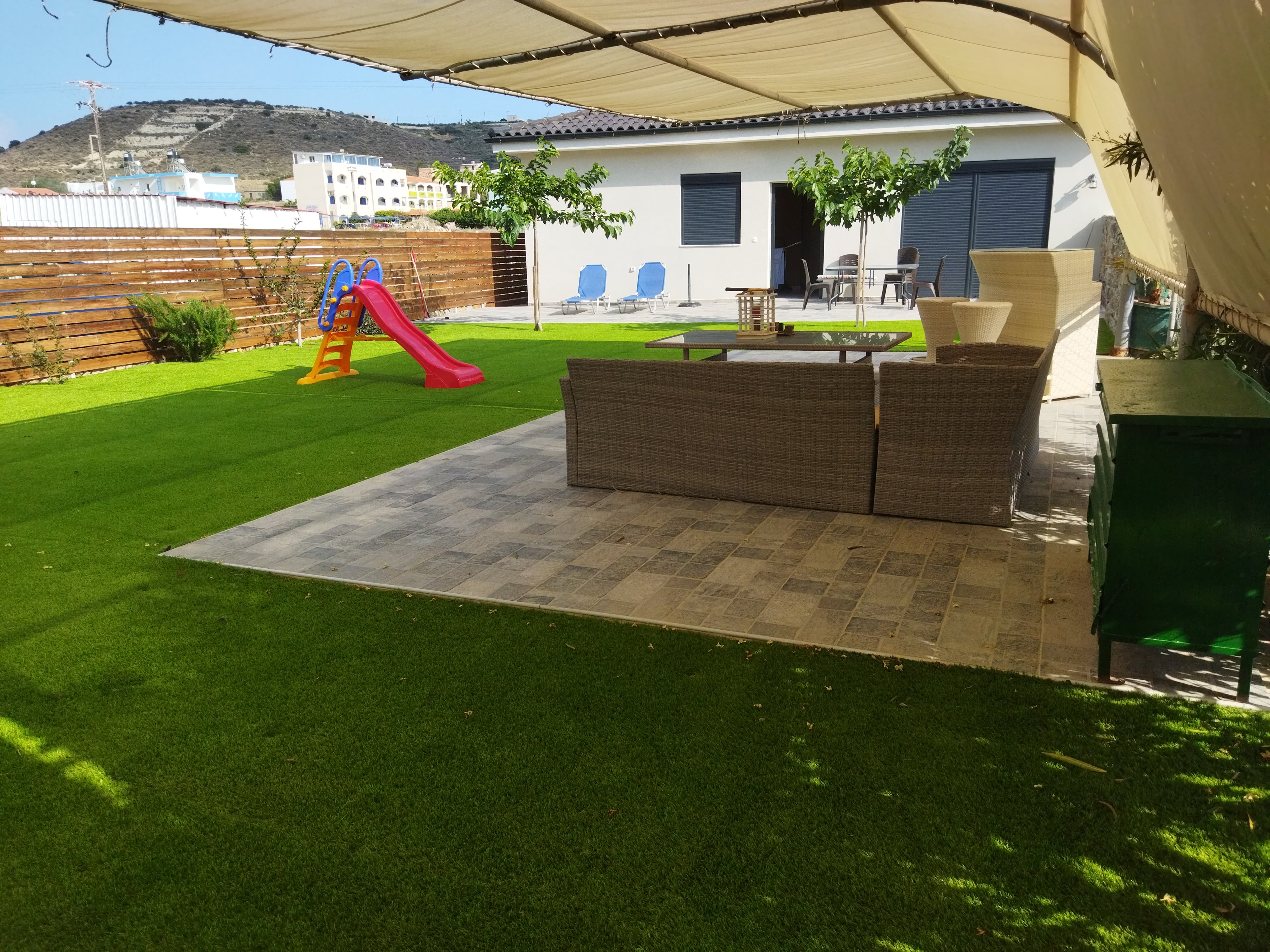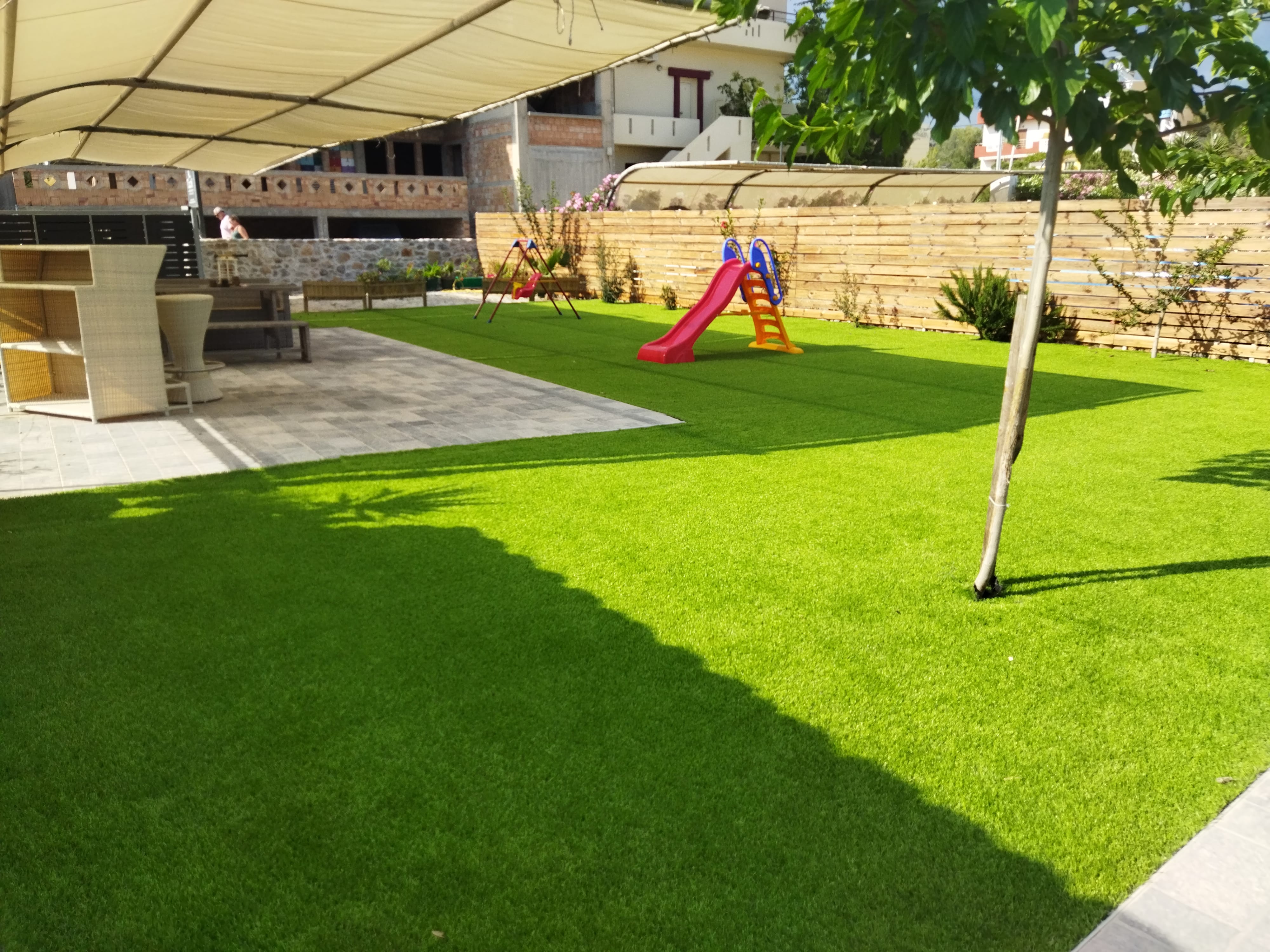 Im großzügigen Garten erwarten Sie ein Pavillon mit Sofas, Esstische, Schaukeln und ein tragbarer Grill – perfekt zum Entspannen und für gemeinsame Stunden im Freien. Ein privater Parkplatz steht ebenfalls zur Verfügung.